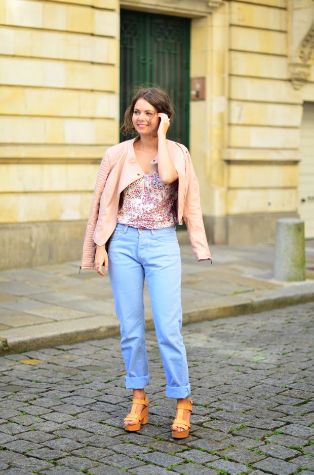 Aujourd'hui mon dernier look avec le perfecto Cache Cache. Décidément, je le porte avec tout, c'est un très bon basique. Je le porte cette fois ci avec des couleurs douces et pastel qui s'accordent facilement entre elles, mon jean Acne plus ou moins boyfriend et un caraco de la collection été de chez Cache Cache ! Il était dans les derniers prix des soldes, j'aime les couleurs et le tissu est très léger, il blouse très bien. C'était mon dernier article de la série, j'espère que vous avez apprécié les différentes pièces présentées de la marque ! J'ai pris beaucoup de plaisir à composer des tenues avec mes autres vêtements !